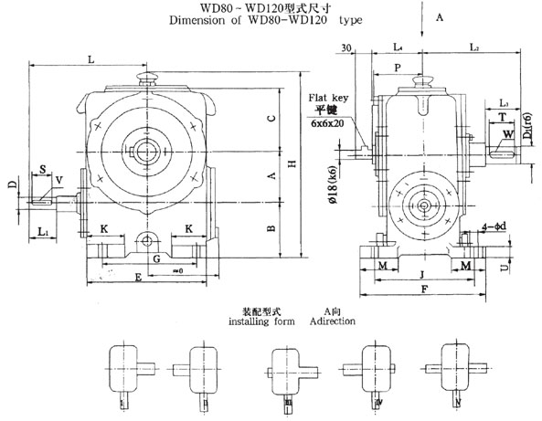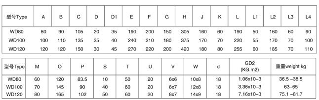 WD系列及WS系列蝸桿減速器是按照中華人民共和國專業標準(Q/ZB125-73)生產的一級傳動的阿基米德圓柱蝸桿減速器,廣泛運用于冶金,礦山及起重機械等部門,其使用范圍如下:蝸桿嚙合處滑動速度不大于7。5米/秒,蝸桿轉數不超過1500轉/分,工作的周圍環境溫度為-40℃-+40℃,可用于正反兩向運轉,規格:WD80-120,WD150-360,WS80-120,WS150-360