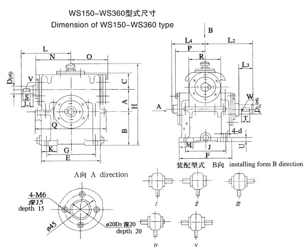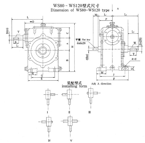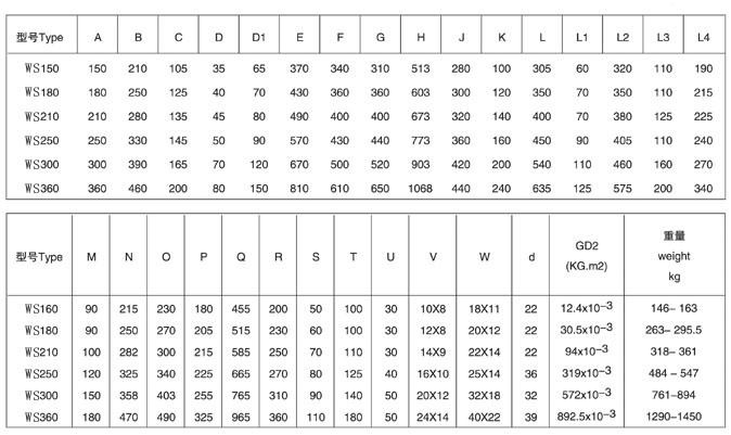WD系列及WS系列蝸桿減速器是按照中華人民共和國專業標準(Q/ZB125-73)生產的一級傳動的阿基米德圓柱蝸桿減速器,廣泛運用于冶金,礦山及起重機械等部門,其使用范圍如下:蝸桿嚙合處滑動速度不大于7。5米/秒,蝸桿轉數不超過1500轉/分,工作的周圍環境溫度為-40℃-+40℃,可用于正反兩向運轉,規格:WD80,WD100,WD120,WD150,WD180,WD210,WD250,WD300,WD360,WS80,WS100,WS120,WS150,WS180,WS210,WS250,WS300,WS360