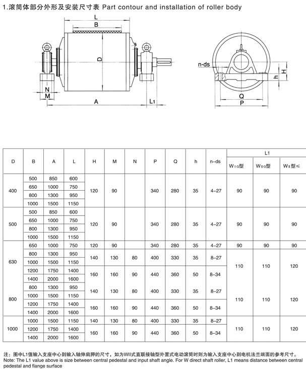 外置式電動滾筒是將電動機裝在滾筒體的外面,減速機構裝在滾筒體內部的一種新型電動驅動裝置,它不但具有原電動滾筒的優點,而且克服了電動機散熱條件差,容易燒損,使用效率受到限制的弱點,功率可達160KW甚至更大。外置式電動滾筒有I型,II型,III型三種安裝方式,可滿足不同場合的安裝需要,內部減速傳動結構目前也有三種:定軸齒輪,擺線針輪,行星齒輪,每一種都經過精心設計,使用安全可靠。
